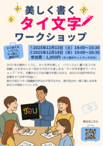 平日は10:00-21:00、土曜日は10:00-20:00の間、開講していますのでお忙しい方でも無理なくタイ語レッスンを受講できます。タイ語オンラインレッスンは講師によって異なりますが毎日9:00-22:00の間、開講しています。